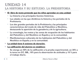 El documento presenta una propuesta didáctica para enseñar sobre la Prehistoria a través de la creación de cómics. Los estudiantes elaborarán un cómic de 5 páginas sobre conceptos clave de cada lección, con diálogos y al menos 8 viñetas por página. Deberán decorar la portada e intercambiar y evaluar los cómics de sus compañeros. El objetivo es mejorar la comprensión lectora y el gusto por la lectura a través de una técnica creativa y entretenida.