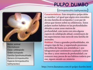 Este documento resume 10 organismos descubiertos en los últimos 10 años, incluyendo el pulpo Dumbo, la rana Pinocho, el pez Dracula, la palmera Tahina, el gusano del diablo, la bacteria que se come el Titanic, la serpiente más pequeña del mundo, el hongo Bob Esponja, la bacteria de la laca del pelo y la cucaracha saltarina. Cada organismo se describe brevemente con sus características distintivas, hábitat y ubicación.