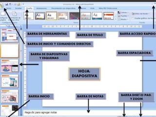 Microsoft PowerPoint es un popular programa de presentaciones desarrollado para sistemas operativos Windows y Mac OS. Permite crear presentaciones con texto, imágenes, gráficos y videos para compartir información de manera dinámica. PowerPoint tiene barras de menús, herramientas y una interfaz gráfica para facilitar la creación y edición de presentaciones.