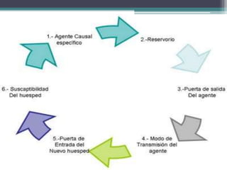 Este documento resume la cadena epidemiológica y la historia natural de la varicela. Se presenta como una infección endémica con picos epidémicos cada 2-3 años. El agente causal es el virus varicela-zóster, el cual se propaga de persona a persona por contacto directo o gotitas respiratorias. El ser humano es el único reservorio y la enfermedad confiere inmunidad prolongada.
