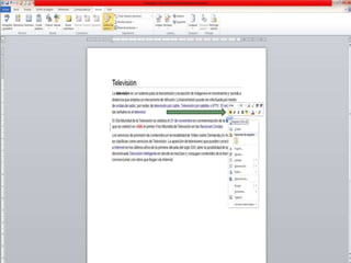 El documento proporciona instrucciones sobre cómo utilizar varias funciones de Microsoft Word, incluyendo cómo crear plantillas, combinar correspondencia, editar esquemas, activar el control de cambios, crear formularios, y revisar y aceptar o rechazar cambios realizados por otros autores. Se explican los pasos para acceder a estas funciones a través de los menús y opciones de Word.