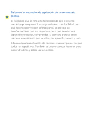 Este documento contiene tres secciones sobre las dificultades que tuvo una alumna al aprender sobre los números, la importancia de familiarizar a los niños con el sistema numérico, e investiga los conocimientos previos sobre números que tienen los alumnos de primer grado. En cada sección, la alumna describe las dificultades que enfrentó, la necesidad de enseñar claramente los números para que los alumnos puedan diferenciarlos y comprenderlos, y los conocimientos básicos sobre números que traen los niños de su infancia pero también las dificult
