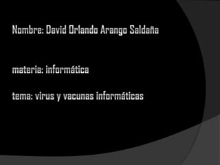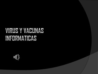 Un virus informático es un malware que altera el funcionamiento del computador sin permiso e infecta otros archivos. Existen varios tipos de virus como caballos de Troya, gusanos y virus de marco. Para prevenir virus se recomienda tener un antivirus actualizado, hacer copias de seguridad y no abrir archivos sospechosos. Los antivirus detectan, vacunan y eliminan virus mediante funciones como detección, actualizaciones y eliminación de malware.