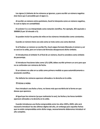 Este documento proporciona una guía sobre el uso de hojas de cálculo en Excel. Explica que una hoja de cálculo es un programa que permite manipular datos numéricos y de texto organizados en celdas. Detalla los tipos de datos que pueden almacenarse en celdas como números, fechas, texto y fórmulas. También describe funciones comunes como SUM, PRODUCT, AVERAGE, MAX y MIN y cómo crear gráficos en Excel.