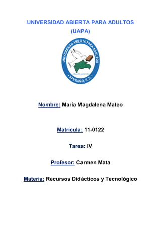 El documento describe diferentes medios audiovisuales utilizados en educación. Define los medios audiovisuales como aquellos relacionados con la imagen y el audio que sirven para comunicar mensajes educativos. Luego describe varios medios como diapositivas, retroproyector, filminas, rotatulo, pizarrón, mapas, televisión, video y materiales informáticos; y discute sus características, ventajas y desventajas para la enseñanza. Finalmente, proporciona criterios para la elaboración y utilización didáctica de estos