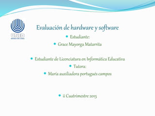 Este documento presenta una evaluación de hardware y software educativos. Describe las características de software educativo y su ventaja en la educación. También compara diferentes modelos de ingeniería de software educativo, tipos de evaluación, y características de materiales educativos computarizados. Finalmente, proporciona una bibliografía de recursos sobre este tema.