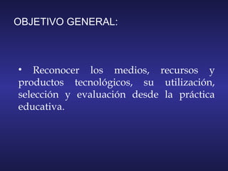 Este documento presenta información sobre el uso de tecnología aplicada a la educación. Explica la importancia de los medios didácticos para crear materiales de aprendizaje y clasifica diferentes recursos educativos. También describe servicios de Internet como correo electrónico, foros de discusión, chats y el World Wide Web. Ofrece criterios para evaluar sitios web y recomendaciones sobre seguridad en Internet.