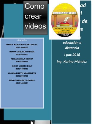 Este documento presenta una lista de los 10 mejores programas para la edición de videos, incluyendo Windows Movie Maker, VirtualDub, Wax, Avidemux, FFMpeg, Blender, ZS4 Video Editor, Cinefx Jahshaka, Zwei-Stein y Movica. También describe herramientas recomendadas como iMovie para Mac y Windows Movie Maker para PC. Explica cómo usar Videospin para crear películas a partir de videos y fotos propias en minutos. Finalmente, ofrece consejos para grabar y subir videos a YouTube usando un teléfono