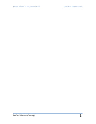 Este documento describe los diodos emisores de luz (LED) y los diodos láser. Explica que un LED funciona emitiendo fotones cuando los electrones pasan de la banda de conducción a la de valencia en un semiconductor, y que los primeros LED visibles fueron desarrollados en la década de 1960. También describe los diodos láser, los cuales emiten luz coherente mediante el uso de materiales semiconductores como el arseniuro de galio. Finalmente, detalla algunas aplicaciones comunes de los LED y los diodos lá
