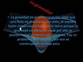• La gravedaden el universo es tan débil que