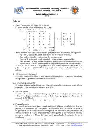 Este documento presenta un problema de ingeniería de control sobre el análisis de un modelo de estado continuo de un generador síncrono. Se pide realizar varios análisis y cálculos sobre el modelo, incluyendo obtener la forma canónica, analizar la controlabilidad y observabilidad, determinar polos, ceros y la matriz de transferencia, y calcular secuencias de control óptimas.