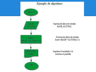Este documento presenta información sobre algoritmos y lógica de programación. Explica objetivos como analizar conceptos fundamentales de algoritmos y entender formas de representar algoritmos. Luego resume el contenido, incluyendo definiciones de algoritmo y lógica, características de algoritmos, partes de algoritmos y ejemplos de algoritmos cualitativos y cuantitativos.