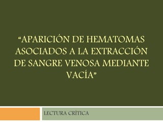 “APARICIÓN DE HEMATOMAS ASOCIADOSA LA EXTRACCIÓN DE SANGRE VENOSA MEDIANTE VACÍA” LECTURA CRÍTICA