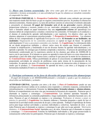 Una empresa de seguros necesita mejorar las habilidades de comunicación y negociación de sus empleados. Cristina debe diseñar un curso sobre estas competencias. Debe incluir actividades alineadas con cinco teorías de aprendizaje: conductista, cognitiva, constructivista, constructivismo social y conversacional. Cristina propone actividades para la competencia de negociación que se ajustan a cada teoría.