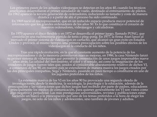 Los primeros videojuegos se desarrollaron en la década de 1940 como simuladores de vuelo, pero no fue hasta 1972 que se lanzó la primera consola de videojuegos doméstica llamada Magnavox Odyssey. Los videojuegos ganaron popularidad en la década de 1970 con juegos como Pong. En las décadas siguientes, las consolas fueron mejorando su potencia y gráficos con cada nueva generación, pasando de 8 bits a 16 bits, 32 bits y más allá, a medida que las compañías como Nintendo, Sega y Sony