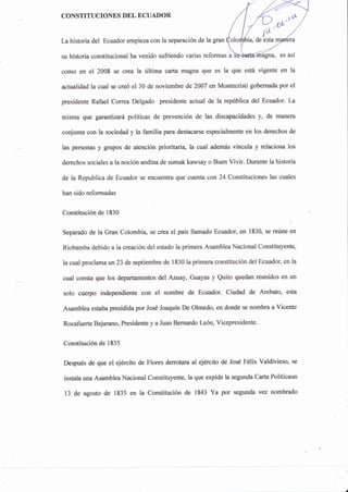 La carta resume la historia constitucional del Ecuador, destacando que ha tenido 24