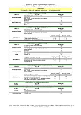 La resolución 374 de 2002 establece las tarifas para el Parque Nacional Natural Gorgona a partir del 1 de febrero de 2005. Los extranjeros deben pagar 20,000 pesos por el ingreso al área continental y marina del parque, mientras que los nacionales deben pagar 6,800 pesos. Los niños entre 5 y 12 años y estudiantes con carnet pagan una tarifa reducida.