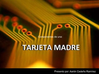 Este documento describe los principales componentes de una tarjeta madre. Estos incluyen la pila de litio que mantiene la configuración de la BIOS, los puertos serie y paralelos para conectar periféricos, las ranuras de expansión para tarjetas adicionales, los conectores para unidades como discos duros, la fuente de alimentación, el chipset, el socket del procesador y los ventiladores de enfriamiento. También explica brevemente cada uno de estos componentes y su función dentro de la tarjeta madre.