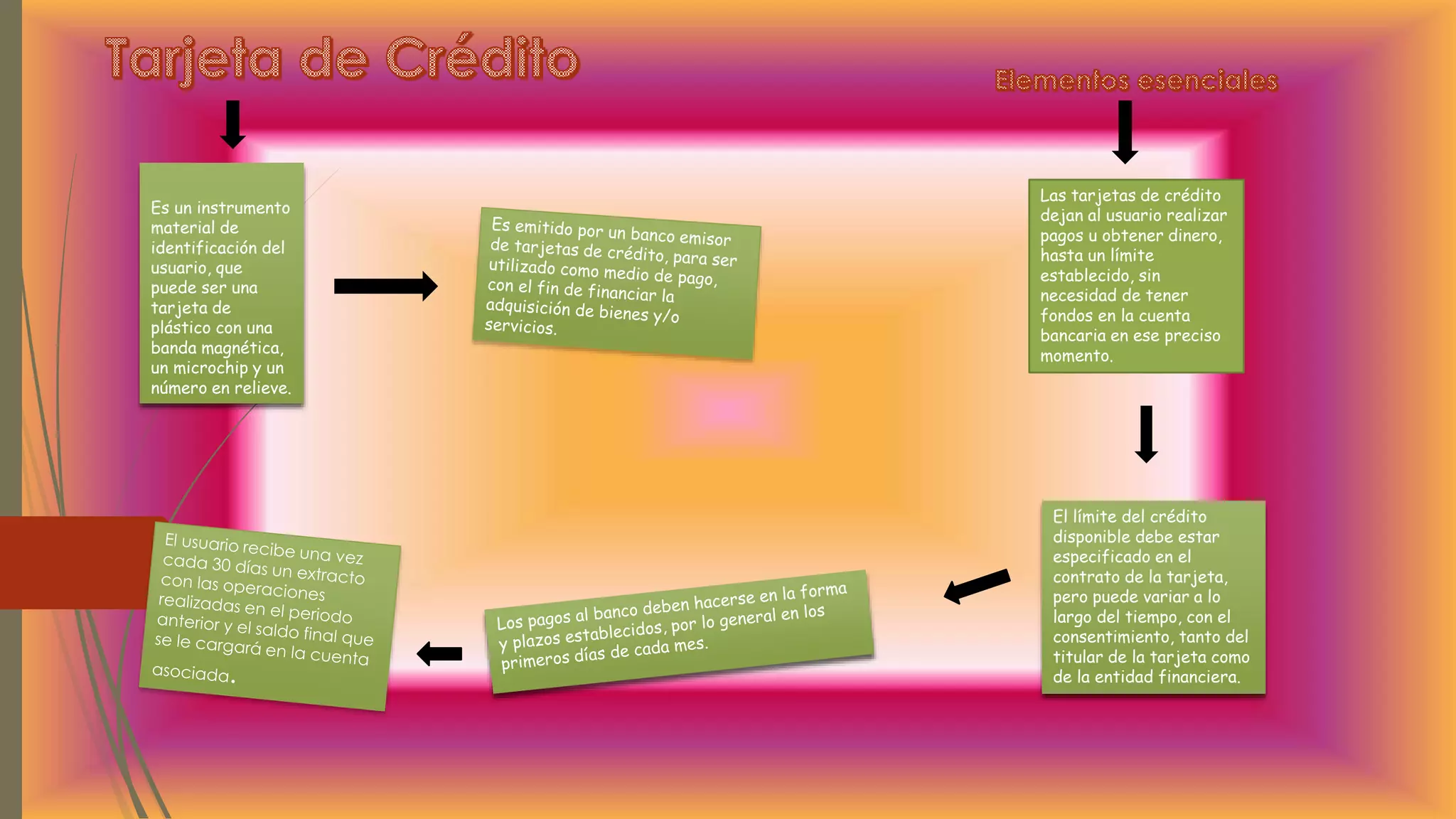 Las tarjetas de crédito y débito son instrumentos de identificación y pago. Las tarjetas de crédito permiten pagos sin fondos disponibles hasta un límite preestablecido, mientras que las tarjetas de débito permiten pagos directamente desde la cuenta bancaria del usuario. Las tarjetas prepagadas requieren una carga de fondos por adelantado y solo permiten gastos hasta ese límite prepagado.