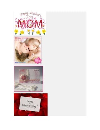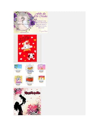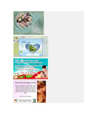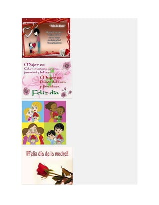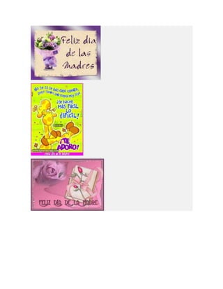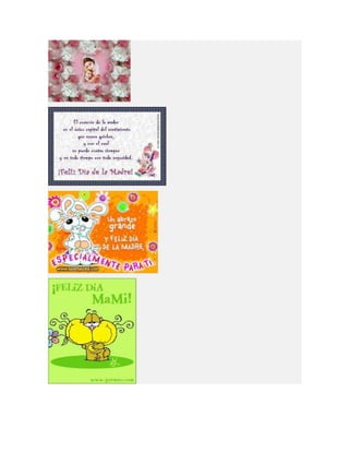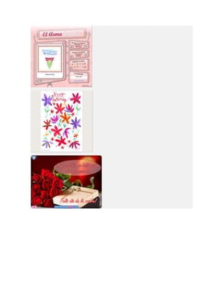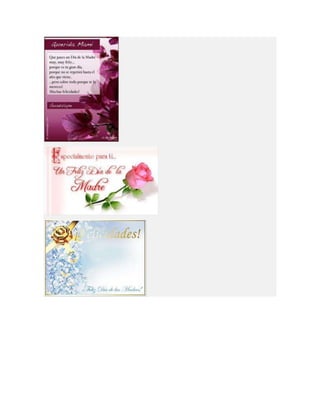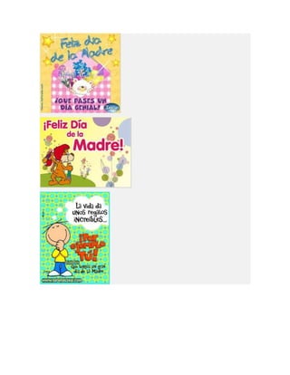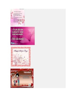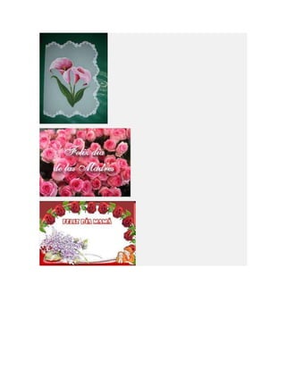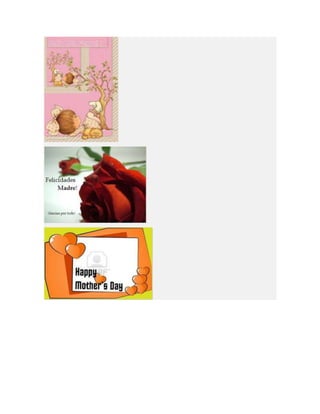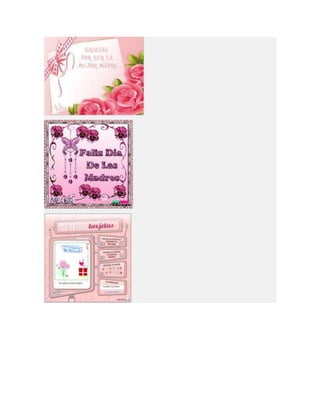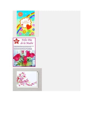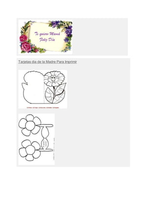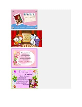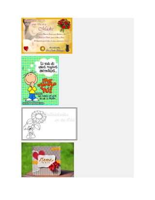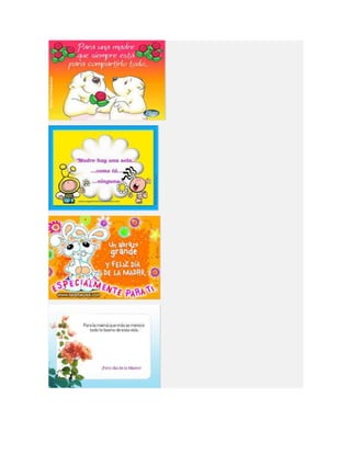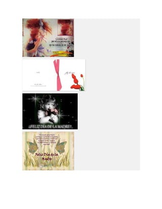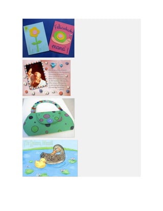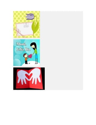 Este documento lista diferentes tipos de tarjetas para el Día de la Madre, incluyendo tarjetas para imprimir, colorear, animadas, cristianas y de manualidades o hechas a mano. Proporciona opciones para crear tarjetas personalizadas para celebrar a las madres.