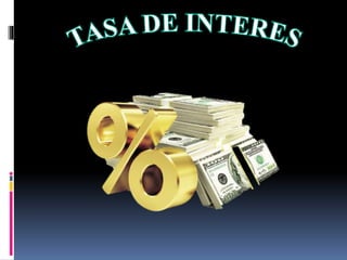 La tasa de interés es el precio del dinero en el mercado financiero y fluctúa dependiendo de la oferta y demanda. En Colombia hay varias tasas de interés de referencia como la DTF, que es el promedio ponderado de las tasas de CDT a 90 días en entidades financieras, y la UPAC que se usa para actualizar el valor de deudas o ahorros indexados y se calcula como un porcentaje de la DTF. Otras tasas son la TES que es el promedio de tasas de CDAT y CDT a diferentes plazos calculado por la Superfin