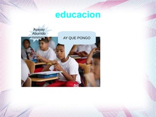 El documento contiene breves reflexiones sobre la educación, el trabajo y los problemas, expresadas en oraciones cortas y con un lenguaje informal. Se habla de sentimientos como la felicidad, el cansancio y la frustración.