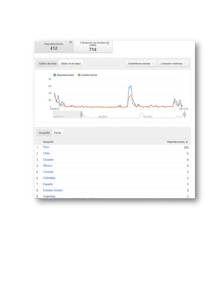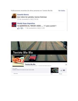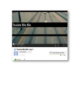 Este documento presenta los resultados de una serie web de tres videos llamada "Taxista Bla bla!". El primer video tuvo un enfoque dramático que no atrajo mucho al público, pero los videos de comedia subsiguientes tuvieron más éxito. Aunque se utilizaron varias técnicas de marketing viral como publicar en páginas populares y usar hashtags, los creadores concluyeron que lograr la viralización de un video es complicado y depende del contenido y su adecuación al público objetivo.