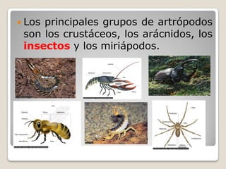 Este documento describe la anatomía externa de los insectos. Explica que los insectos tienen el cuerpo dividido en tres regiones (cabeza, tórax y abdomen) y están recubiertos por un exoesqueleto quitinoso. También describe las diferentes partes como las antenas, ojos, patas, alas y piezas bucales, así como los diferentes tipos de aparatos bucales y larvas de insectos.