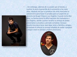 Taylor Lautner nació en 1992 en Michigan y comenzó a practicar karate a los seis años, ganando torneos a los siete. Se convirtió en campeón mundial junior de armas y formas a los ocho años, y a los doce años ya tenía tres campeonatos mundiales junior. Además de su pasión por el karate, le interesó la actuación a los siete años y su familia se mudó a Los Ángeles cuando tenía diez para que pudiera presentarse a más pruebas, lo que le permitió conseguir papeles en varias series