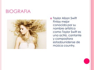 Taylor Swift es una cantante y compositora estadounidense nacida en 1989 en Pensilvania. A los 14 años se mudó a Nashville para perseguir una carrera en la música country. Ha lanzado seis álbumes de estudio, comenzando con su álbum debut homónimo en 2006. Sus álbumes Fearless de 2008 y Speak Now de 2010 fueron grandes éxitos comerciales, con canciones como "Love Story" y "You Belong with Me". Con más de 50 millones de descargas, Swift es una de las artistas musicales más vendidas de