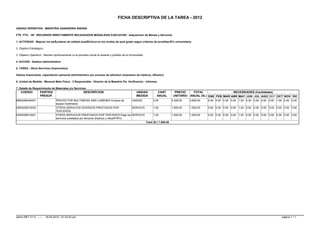 Este documento describe una tarea para mejorar los estándares académicos en una maestría de ganadería andina en Perú. La tarea implica la compra de proyectores multimedia, el pago por servicios imprevistos como impresión de folletos y difusión, y el pago por otros servicios de terceros relacionados con la difusión, con un presupuesto total de 7,600 soles.
