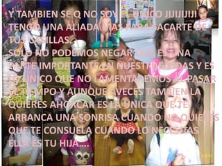 La persona ama a su mamá y le agradece por todo lo que ha hecho por ella. Reconoce que a veces es difícil pero que su mamá siempre las saca adelante a ella y a su hija con su amor. Aunque a veces quisiera estrangularla, su mamá es la única capaz de sacarle una sonrisa y consolarla cuando más lo necesita. Promete amarla por siempre.