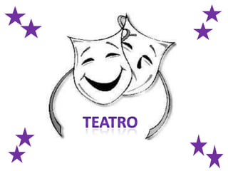 El teatro es una forma de arte escénico que representa historias frente a una audiencia usando una combinación de discurso, gestos, escenografía, música, sonido y espectáculo. Las obras dramáticas se escriben en diálogos y acciones entre paréntesis, mientras que el director es responsable de coordinar todos los elementos de la producción para convertir el texto en una presentación teatral.