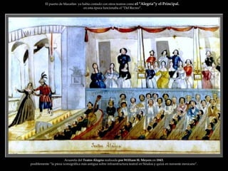 El Teatro Ángela Peralta en Mazatlán tuvo una larga y rica historia desde su construcción en 1869 hasta su restauración en 1992. Fue nombrado en honor a la famosa soprano Ángela Peralta, quien murió de fiebre amarilla en Mazatlán en 1883 antes de poder presentarse en el teatro. El teatro se deterioró con el tiempo hasta quedar en ruinas, pero fue restaurado y reinaugurado gracias a los esfuerzos de la asociación Amigos del Teatro Ángela Peralta.