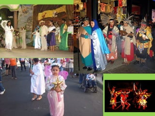 El documento describe algunos rasgos culturales comunes de los pueblos mesoamericanos precolombinos como su concepción cíclica del universo, religión politeísta, sacrificios humanos, uso de calendarios y práctica del juego de pelota ritual. También presenta la leyenda de la fundación de Teotihuacán y describe brevemente el teatro prehispánico vinculado a rituales religiosos, así como el teatro evangelizador que sirvió para convertir a los indígenas al catolicismo.