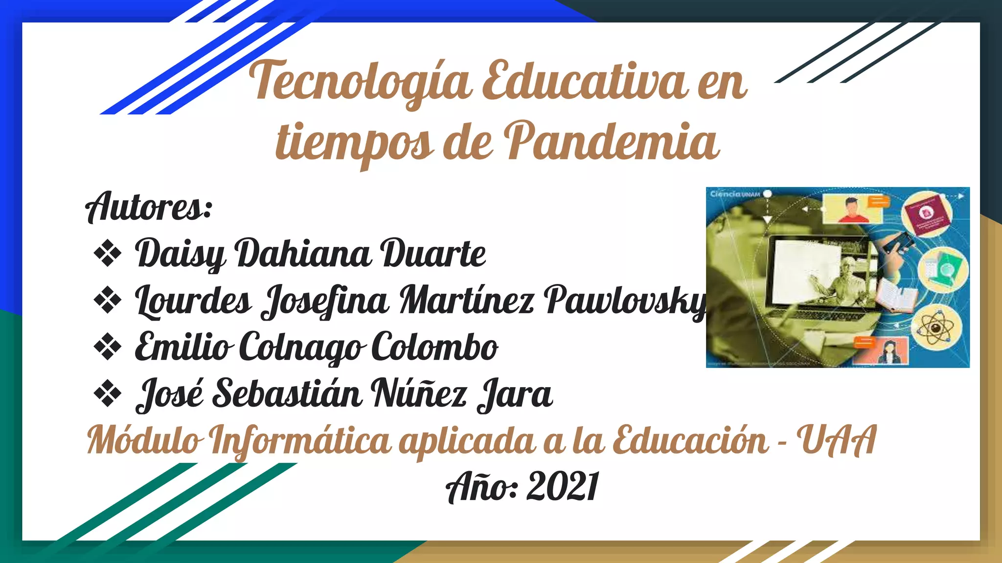 El documento destaca cómo las tecnologías de la información y comunicación (TIC) han transformado la educación durante la pandemia, facilitando la interacción entre docentes y estudiantes a través de entornos virtuales. Se menciona que el uso de estas tecnologías reduce costos y ofrece oportunidades de enseñanza personalizada, con herramientas como Kahoot!, Google Classroom y Photomath que promueven un aprendizaje dinámico y accesible. A pesar de las dificultades impuestas por el COVID-19, la educación se ha adaptado, demostrando que la tecnología actúa como un democratizador de la enseñanza.