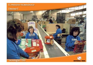 Este documento presenta una introducción al proceso tecnológico, incluyendo sus fases y una aplicación de ejemplo para crear una caja de tangram. También describe la organización típica y las normas de seguridad de un aula de tecnología.