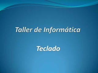 Este documento describe las diferentes partes de un teclado de computadora, incluyendo el área central, el área superior, las teclas con múltiples símbolos, los indicadores luminosos, el área de edición y el teclado numérico.