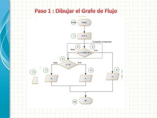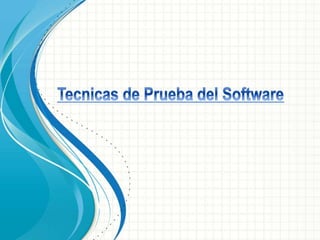 Este documento presenta los fundamentos de las pruebas de software, incluyendo técnicas como caja blanca, derivación de casos de prueba a partir de casos de uso, y el uso de matrices de grafos. Explica conceptos como flujo de pruebas de software, diseño de casos de prueba, y objetivos de prueba como verificar la funcionalidad y el funcionamiento interno de un producto.