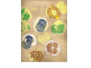 El documento describe varias actividades artísticas efímeras para niños como experimentar con mezclas de colores usando leche y colorantes, estampar con hojas y frutas, y esgrafiar con ceras de colores. El proyecto tiene como objetivo que los niños exploren diferentes técnicas artísticas de manera creativa.