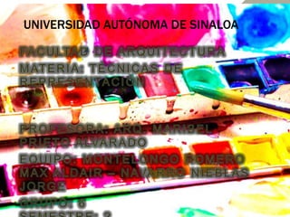 Este documento trata sobre los conceptos básicos del color como la percepción visual del espectro electromagnético, los colores primarios, secundarios y terciarios obtenidos de su mezcla, y las técnicas de representación del color mediante lápices de colores y lápices acuarelables. Explica los principios del tramado y el círculo cromático, e incluye laminas demostrativas de diferentes efectos de color logrados con estos materiales.