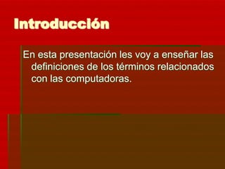 Este documento presenta definiciones breves de varios términos relacionados con la tecnología, incluyendo Web 2.0, código abierto, robótica, inteligencia artificial y virus. Explica que la Web 2.0 representa la evolución de aplicaciones enfocadas en el usuario, mientras que el código abierto se refiere al software con su código disponible públicamente. También define robótica como la ciencia de los robots, inteligencia artificial como el desarrollo de agentes no vivos racionales y virus como malware que altera el funcionamiento de
