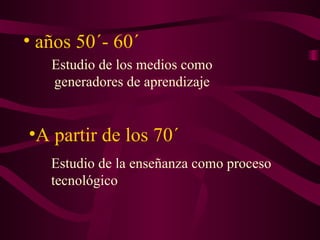 El documento aborda la evolución y redefinición del campo de la tecnología educativa desde su surgimiento en las décadas de 1950 y 1960, enfocándose en cómo ha pasado de ser una mera aplicación de medios a un estudio científico de prácticas educativas. Se critica la visión sistémica que puede llevar a un enfoque reduccionista y se propone una reconceptualización que integre teorías de comunicación y enfoques psicológicos centrados en el aprendizaje. Además, se destaca la necesidad de un diálogo más profundo sobre el estatus epistemológico y las condiciones de producción del conocimiento en tecnología educativa.