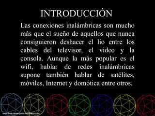 Este documento describe las tecnologías inalámbricas, incluyendo Wi-Fi, Bluetooth y GPRS. Explica que estas tecnologías permiten conectar dispositivos sin cables mediante ondas de radio, microondas o infrarrojos. También discute las ventajas de la conectividad inalámbrica como la falta de cables y la facilidad de instalación, así como las desventajas como el ancho de banda más bajo y la posible interferencia.