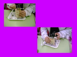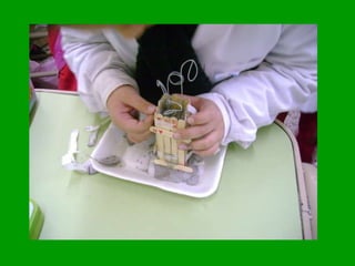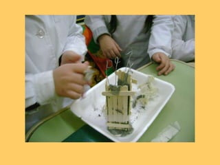 El documento describe los pasos para construir una columna como las que se usan para construir el esqueleto de una vivienda, incluyendo 1) hacer un encofrado con palitos de helado, 2) llenar el molde con una mezcla de cemento, arena y agua, 3) dejar fraguar la mezcla para que se endurezca, y 4) retirar el molde.