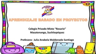 El documento define el aprendizaje basado en proyectos como un método de aprendizaje activo donde los estudiantes investigan un tema y desarrollan un proyecto con la orientación del maestro para resolver un problema real. Explica los 11 pasos para la elaboración de proyectos y el rol del maestro en guiar el proceso, estimular a los estudiantes y evaluar el progreso y resultados del proyecto. También describe cómo evaluar los proyectos y da recomendaciones para aplicar con éxito el método.