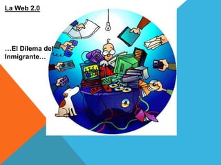 El documento discute la Web 2.0, incluyendo su definición, características y evolución a través del tiempo. Aborda conceptos como plataformas, usuarios generadores de contenido, redes sociales y experiencias complementarias.
