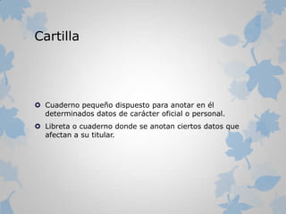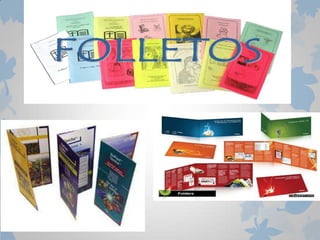 Este documento define y describe varios tipos de materiales de comunicación y marketing, incluyendo cartillas, folletos, plegables, brochures, portafolios de servicios, planes de negocios y diseño corporativo. Explica que estos materiales sirven para compartir información sobre una empresa, sus productos y servicios de manera concisa y cohesiva.