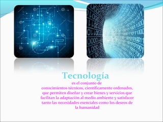 La tecnología se define como el conjunto de conocimientos científicos y técnicos que permiten diseñar bienes y servicios para satisfacer las necesidades humanas y adaptarse al medio ambiente. Las nuevas tecnologías son aquellas desarrolladas principalmente después de la Segunda Guerra Mundial y han sido parte fundamental de los procesos económicos a lo largo de la historia al facilitar la producción e intercambio de bienes y servicios.