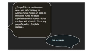 La hija le pide permiso a su padre para ir a casa de su amiga Cami para hacer una tarea y quedarse a dormir allí. Aunque el padre no confía en dejarla ir, al final la deja salir. La hija y su amiga pasan el día juntas y la hija regresa a su casa a las 12:30 de la noche, más tarde de lo planeado.